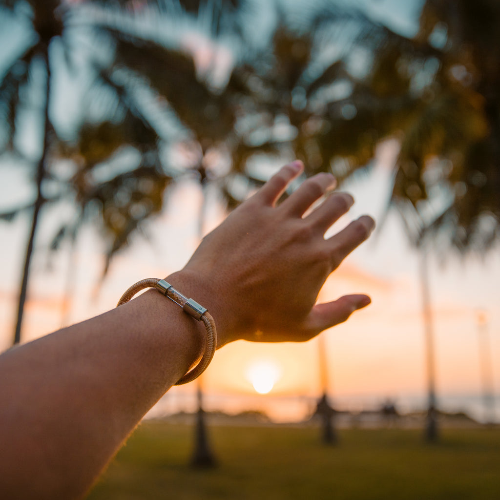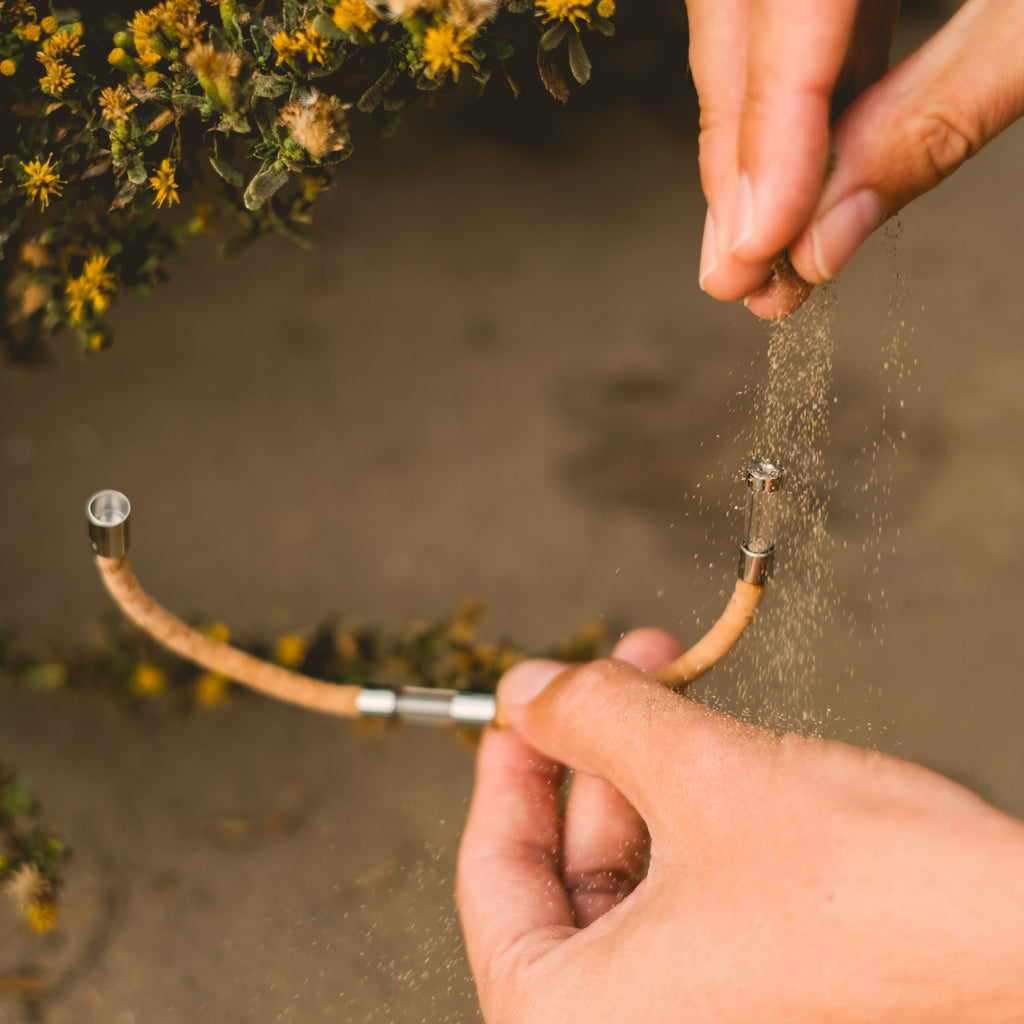 Our only bracelet with two empty capsules - fill them with sand / earth or something meaningful. Keep a reminder of your special connections.