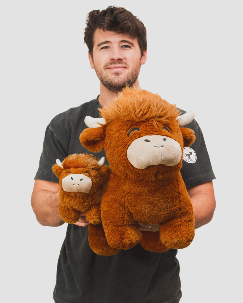 Meet Henry The Jumbo Highland Cow Plushie! Henry is a high achiever. He likes to be captain of the hill. This Jumbo version of Henry is over 5x larger than our regular sized Highland Cow Plushie!