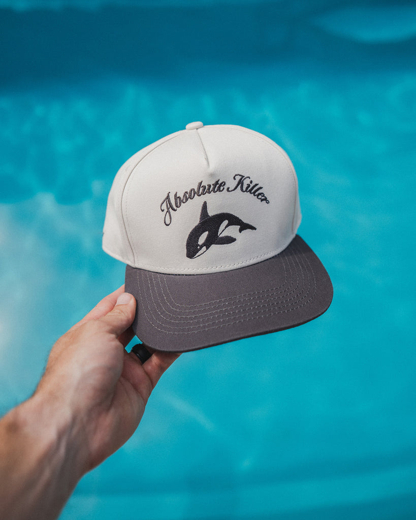 Our Absolute Killer Hat features an embroidered design of a orca, sometimes referred to as a killer whale. A member of the dolphin family, the orca is the ocean's top predator. We've partnered with The Dolphin Project: your purchase gives back to helping rescue and protect dolphins.