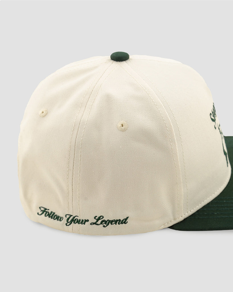 Our Stay High Hat features an embroidered design of a highland cow, happily standing high up on the hill. Your purchase gives back to help rescue wildlife through the Follow Your Legend Foundation.